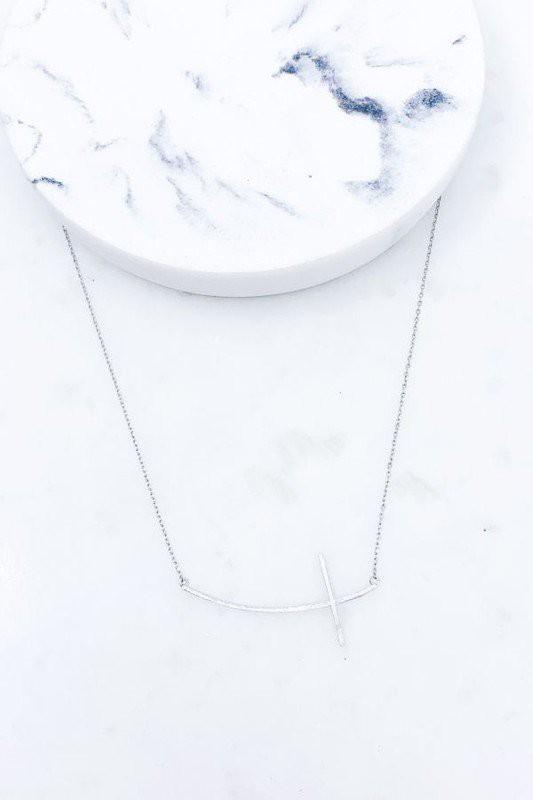 Brushed Cross Pendant Necklace - Silver