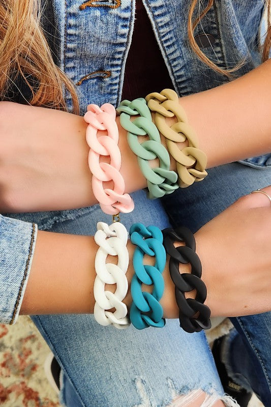Chunky Chain Bracelets are the perfect statement piece to add a bit of flair to your outfit. Featuring a bold chain look with gold hardware and fun colors, layer them up or rock them solo for a chic look. Stack them up with your other favorite bracelets and watches for an eye-catching statement.