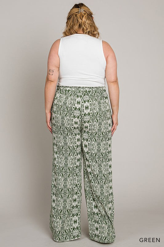 Curvy Boho Ethnic Prints Smocking Detailed Waist Pants - Green