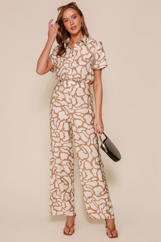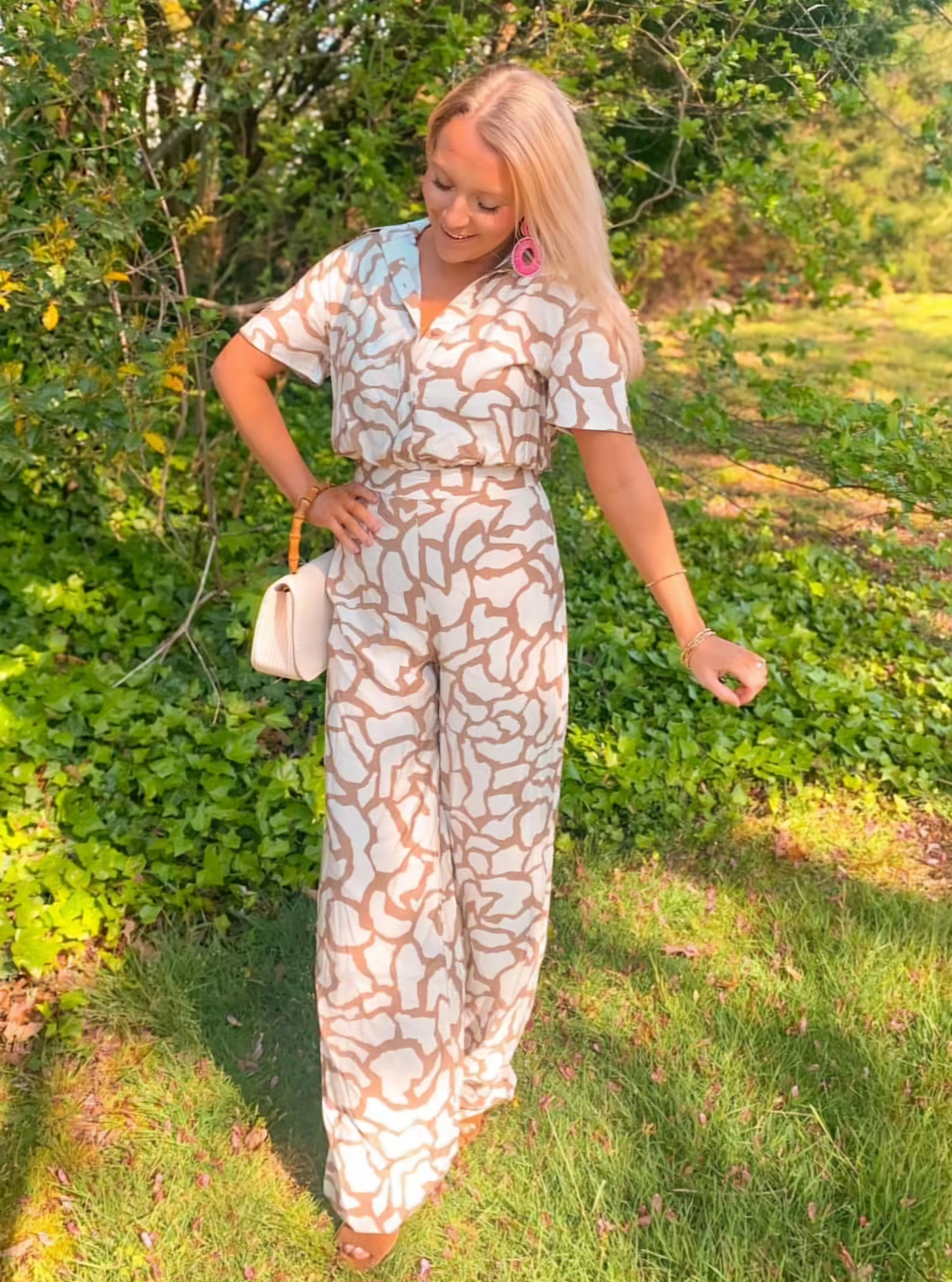 Geometric print night out jumpsuit - Taupe