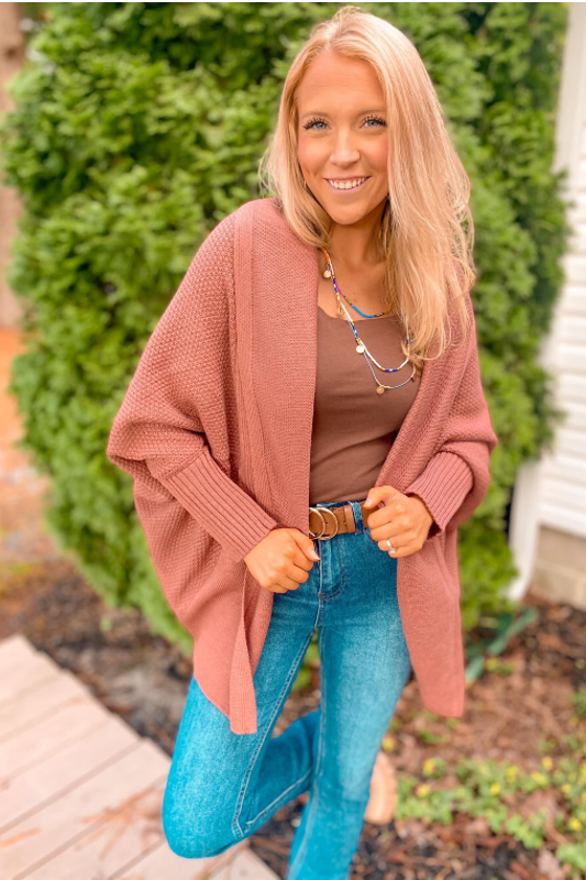 Knit Batwing Sleeve Open Front Cardigan - Brick
