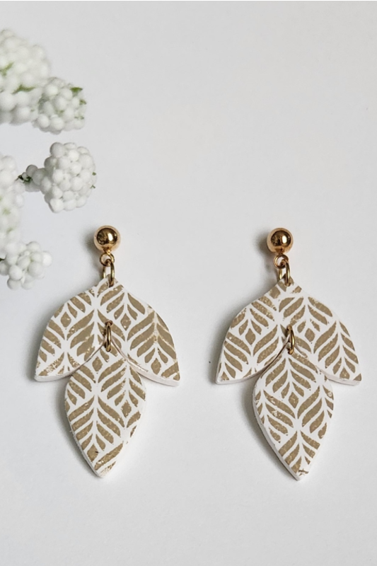 Simply Saige Reece Floral Drop Clay Earrings - Tan on White