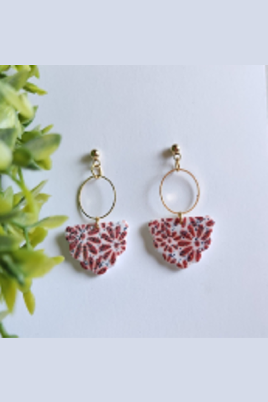 Simply Saige Red Dangle is a handmade and one-of-a-kind piece of jewelry made from polymer clay. It features shades of red and white with iridescent glitter, dangles gracefully from a dainty gold circle. Red is one of F/W '23 colors. Looking to add a splash of it to your wardrobe without wearing red clothing? Look no further! This dangle is your perfect way to do so!