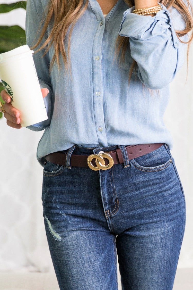 The Taylor Double O Belt is a stylish addition to your outfit. This chic accessory has a stylish double O buckle, perfect for adding a touch of trend to any look. This belt will elevate your wardrobe and add that extra touch.